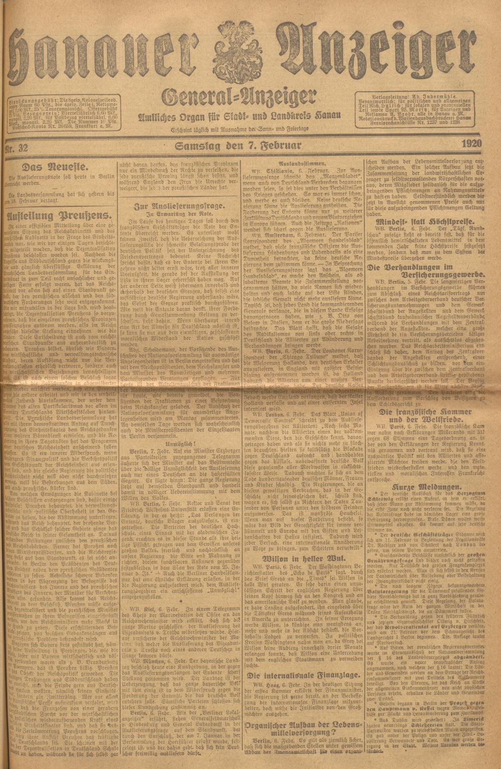 Hanauer Anzeiger. 1872-1941
