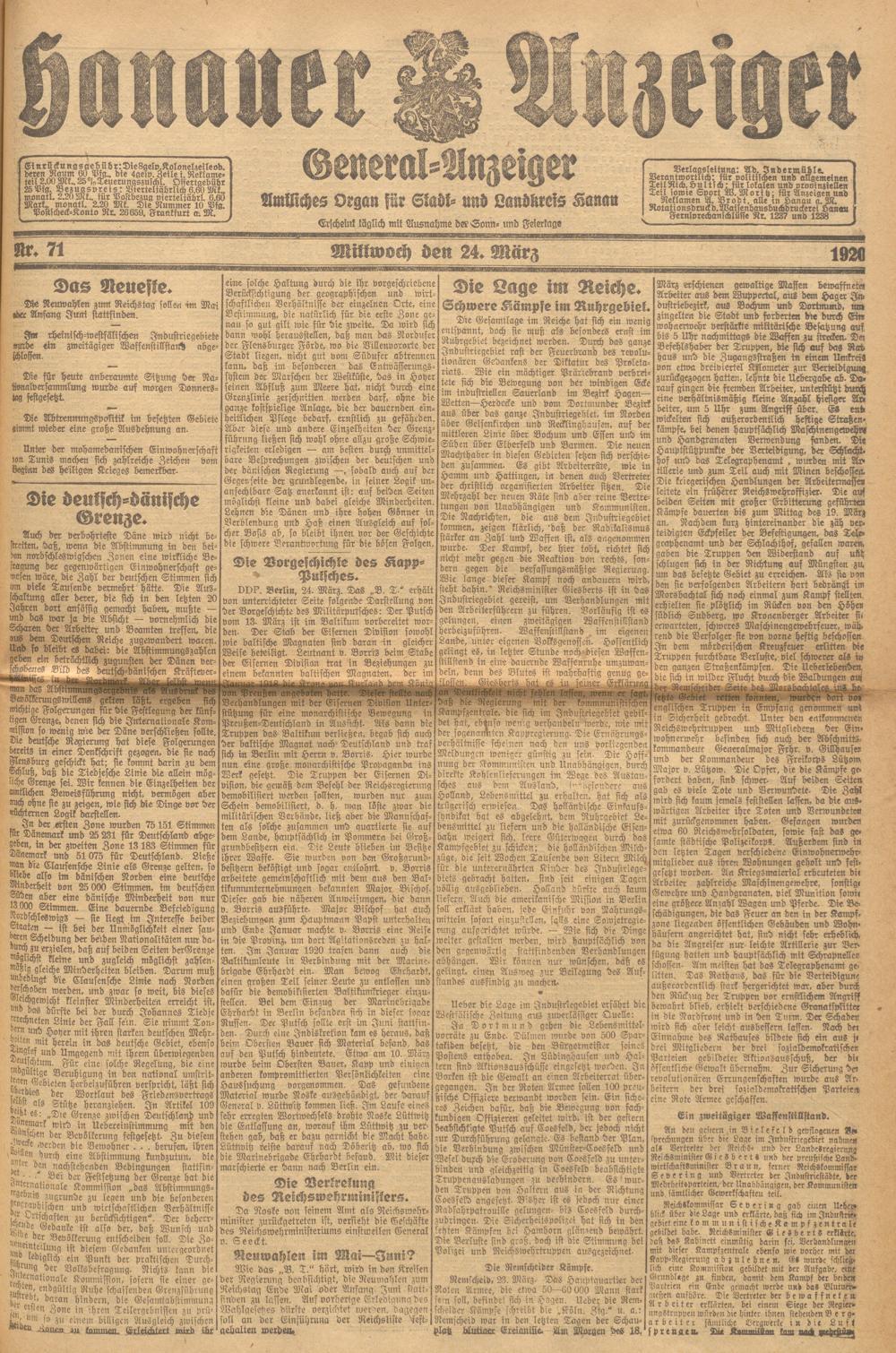 Hanauer Anzeiger. 1872-1941