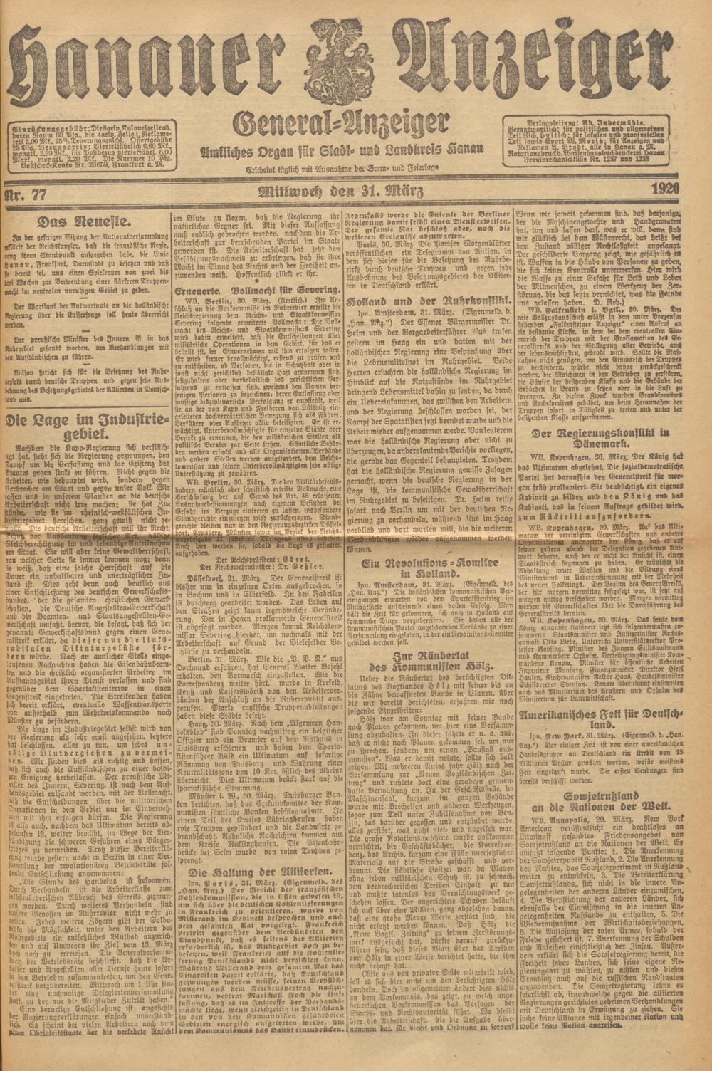 Hanauer Anzeiger. 1872-1941