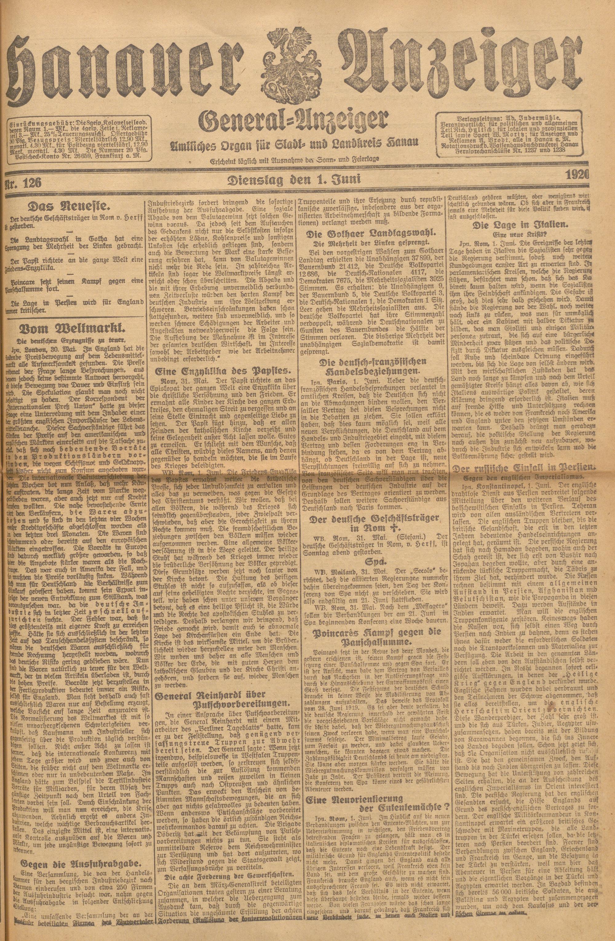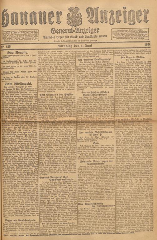 Hanauer Anzeiger. 1872-1941