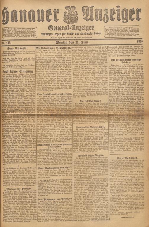 Hanauer Anzeiger. 1872-1941