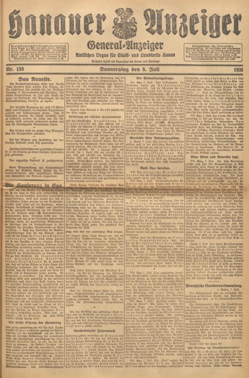 Hanauer Anzeiger. 1872-1941