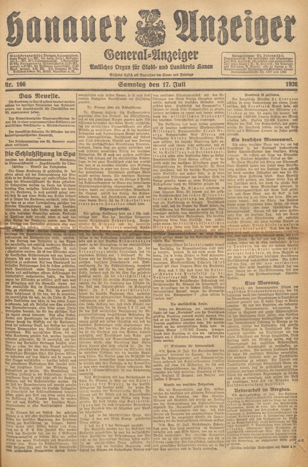 Hanauer Anzeiger. 1872-1941