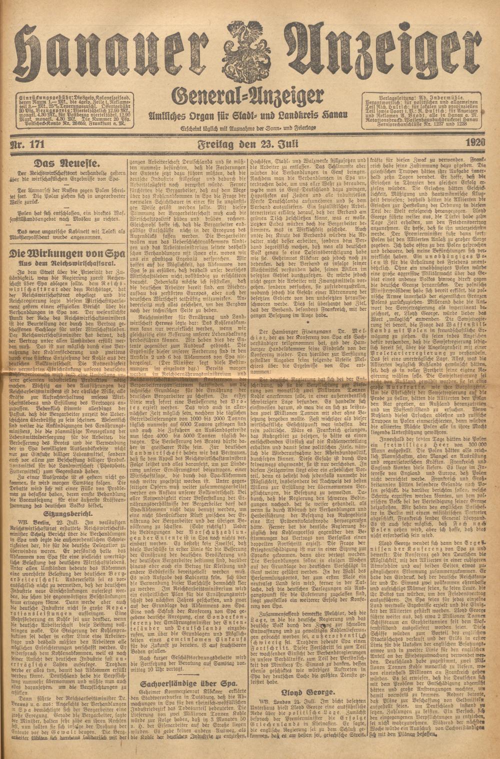 Hanauer Anzeiger. 1872-1941