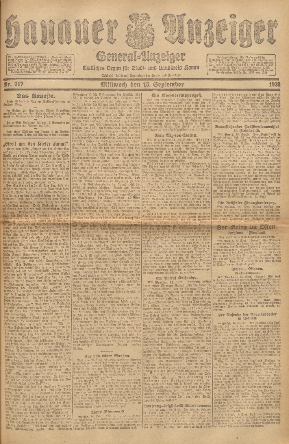 Hanauer Anzeiger. 1872-1941