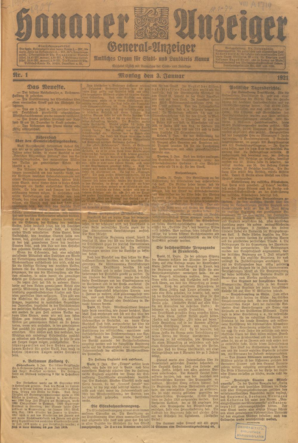Hanauer Anzeiger. 1872-1941