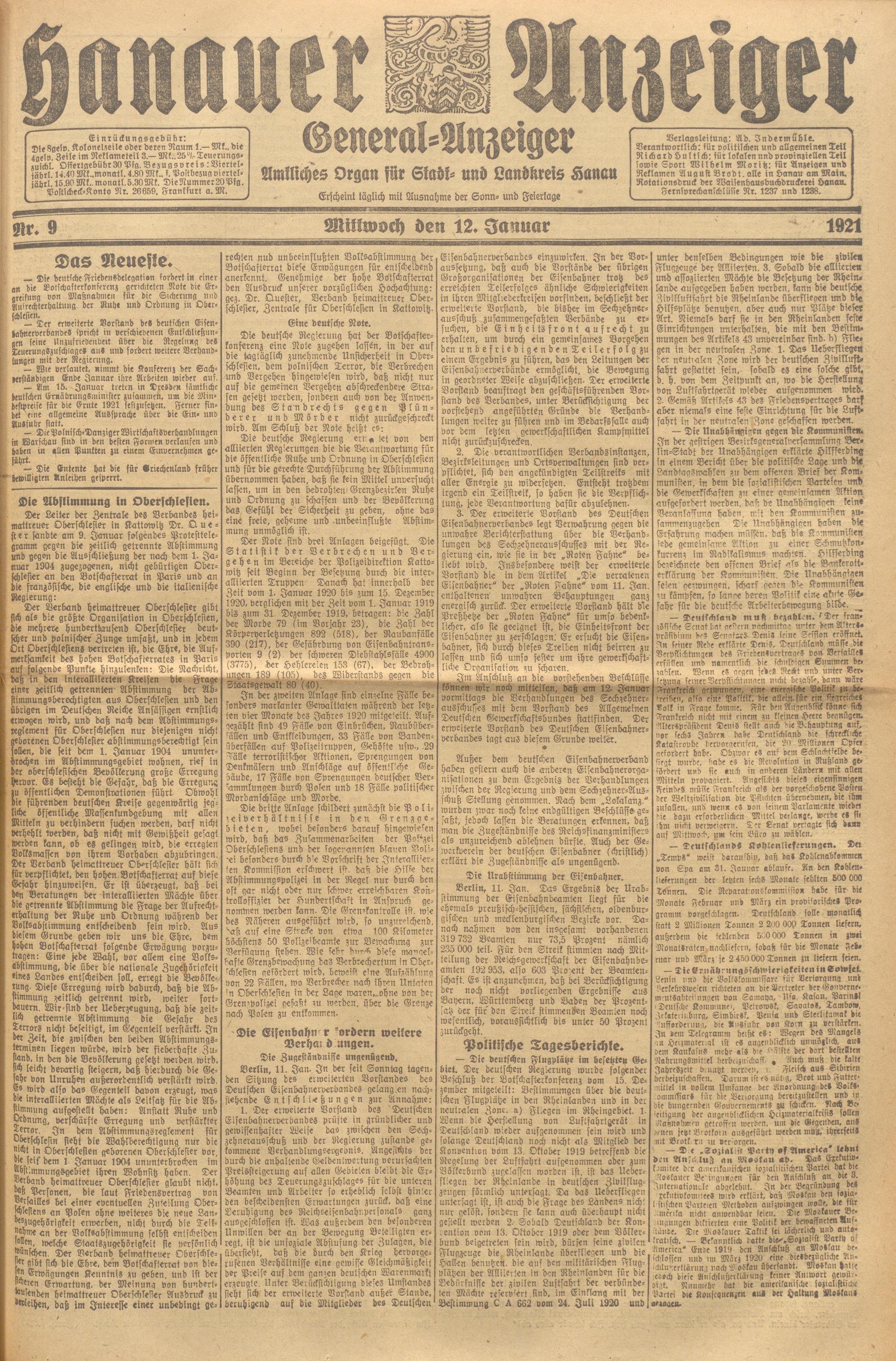 Hanauer Anzeiger. 1872-1941