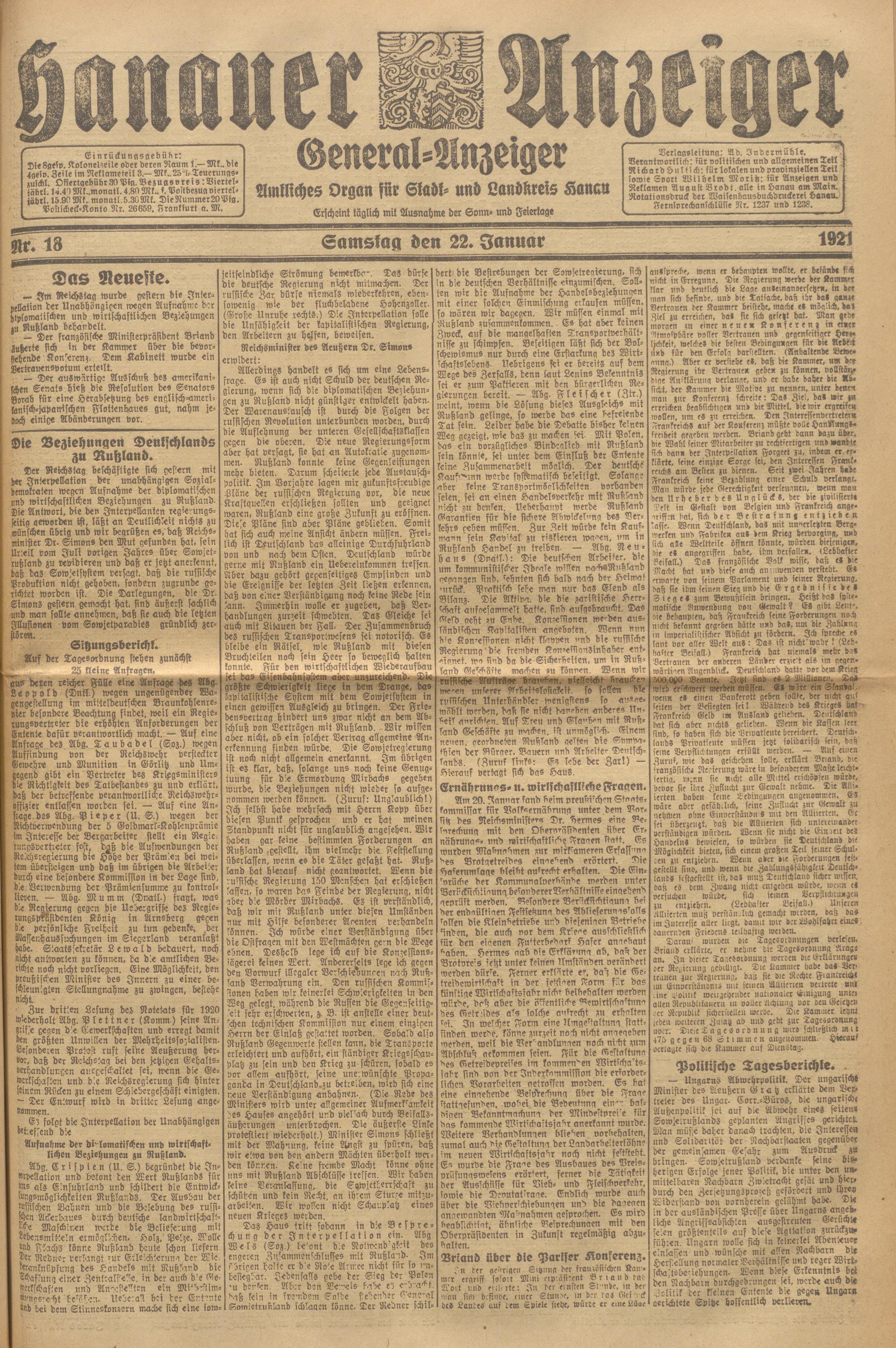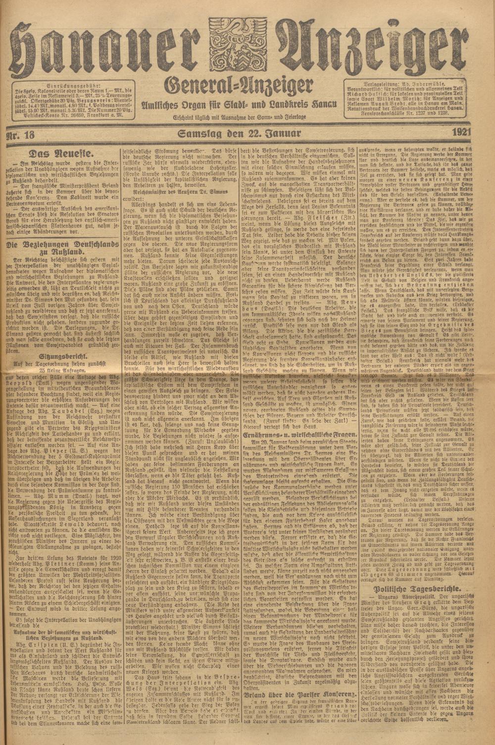 Hanauer Anzeiger. 1872-1941