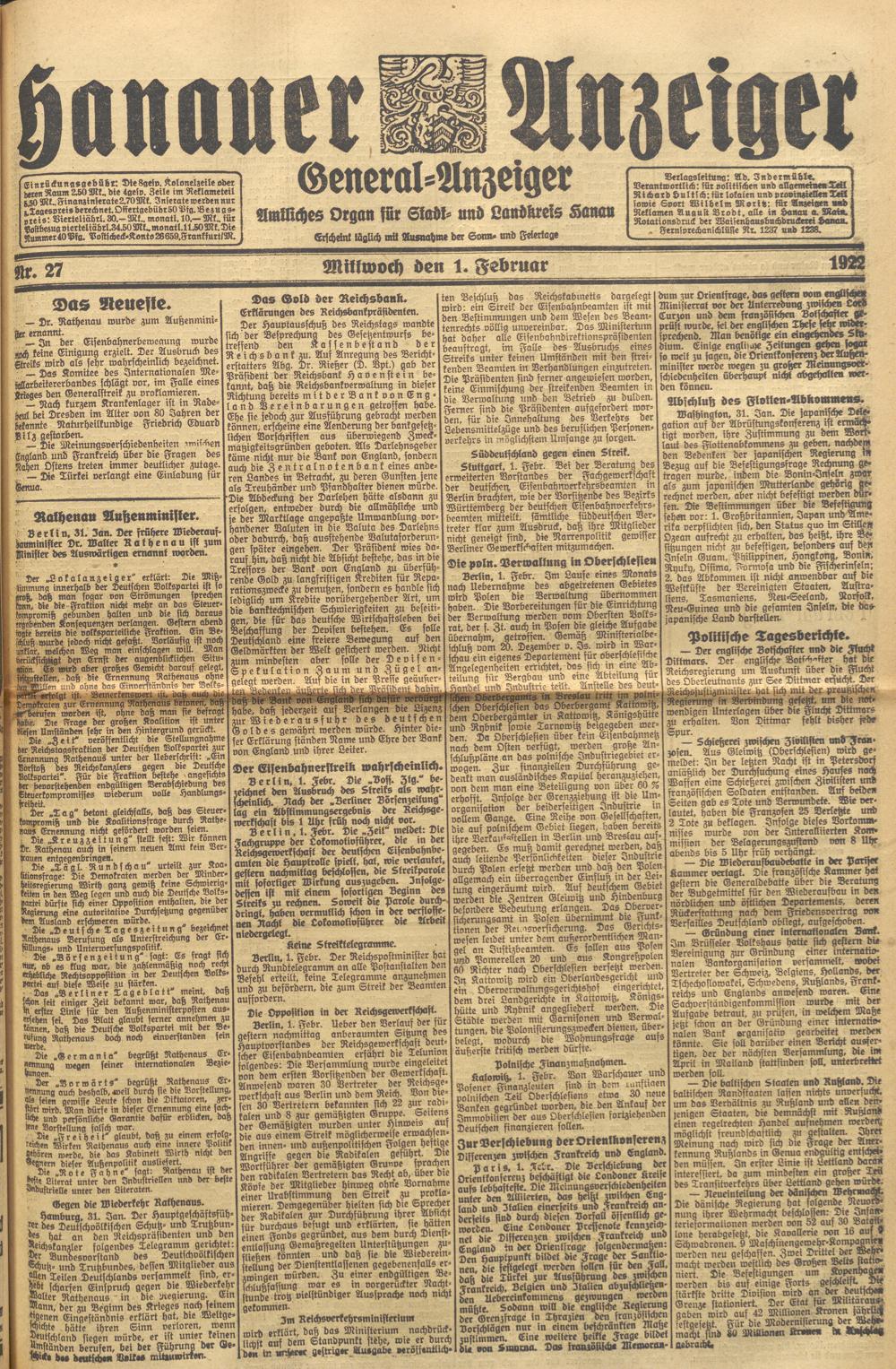 Hanauer Anzeiger. 1872-1941