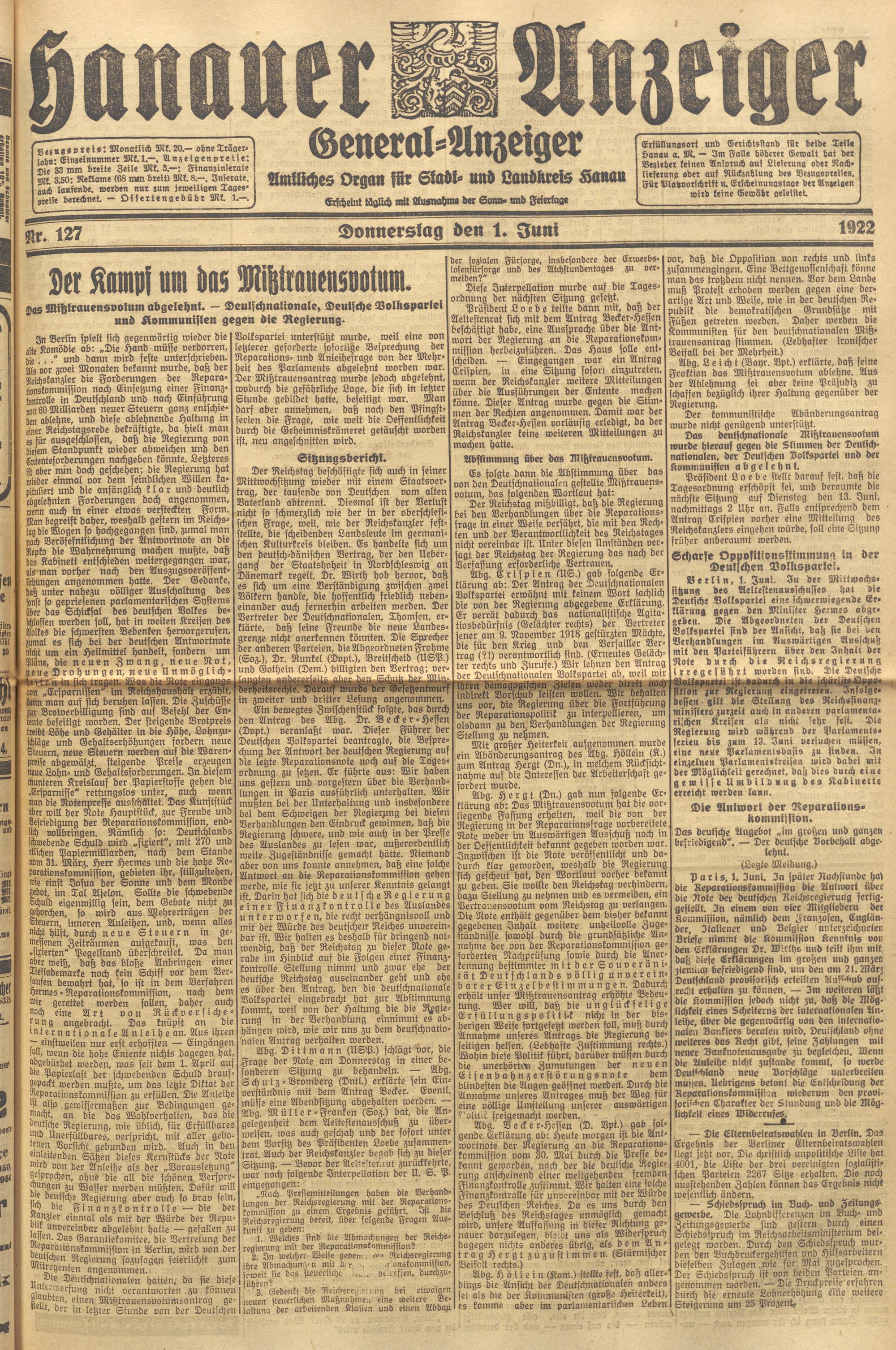 Hanauer Anzeiger. 1872-1941