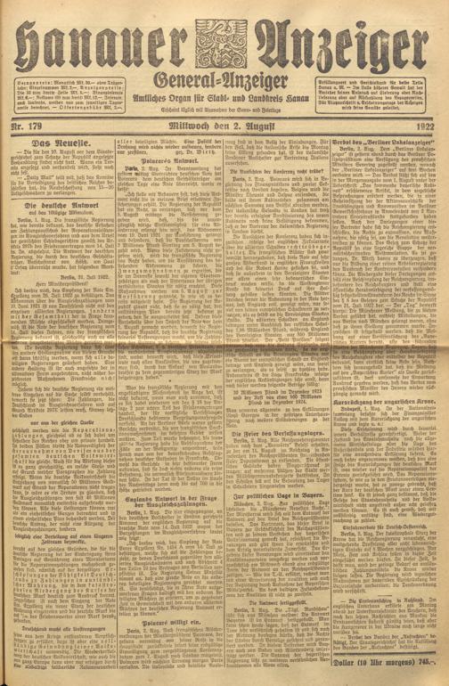 Hanauer Anzeiger. 1872-1941
