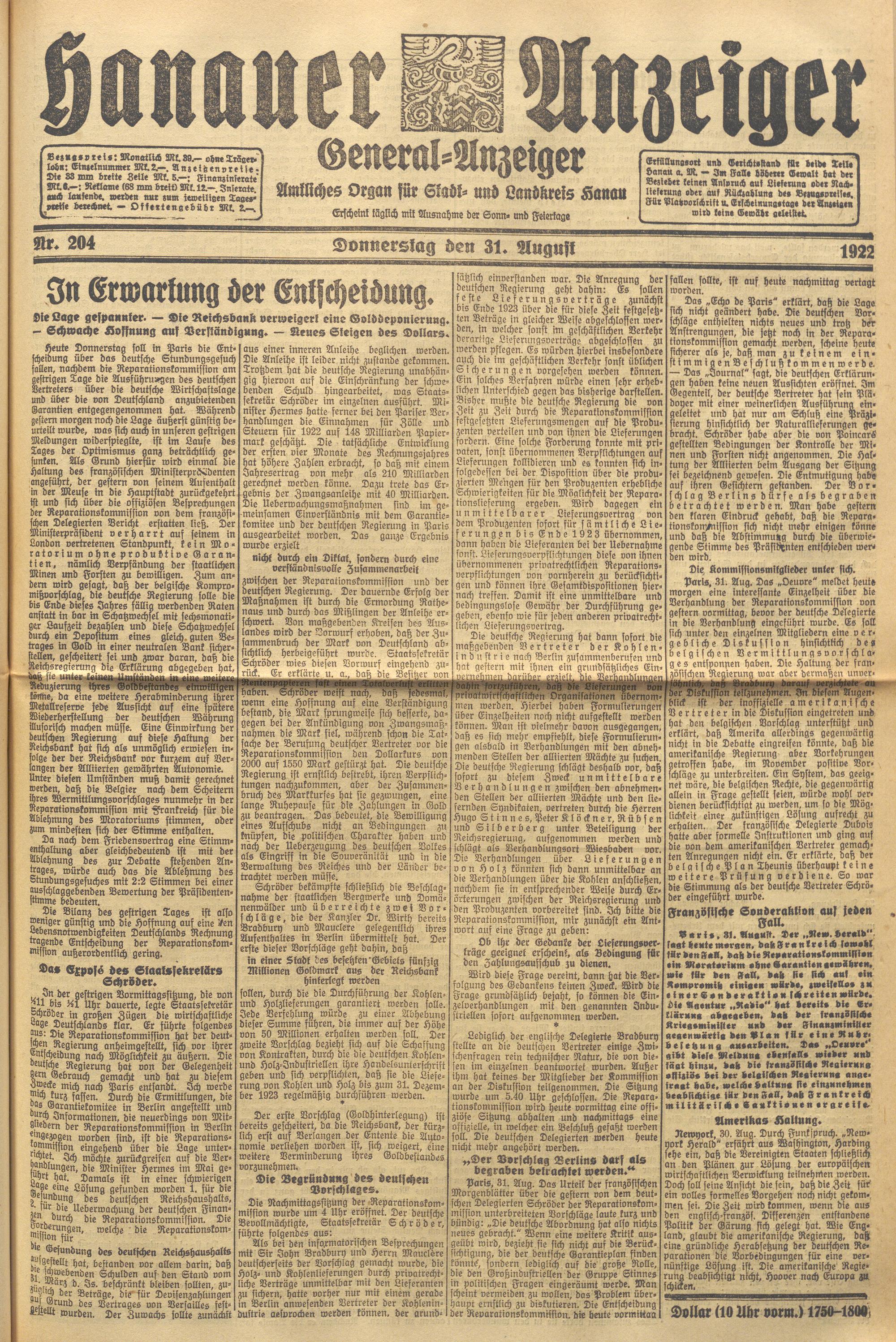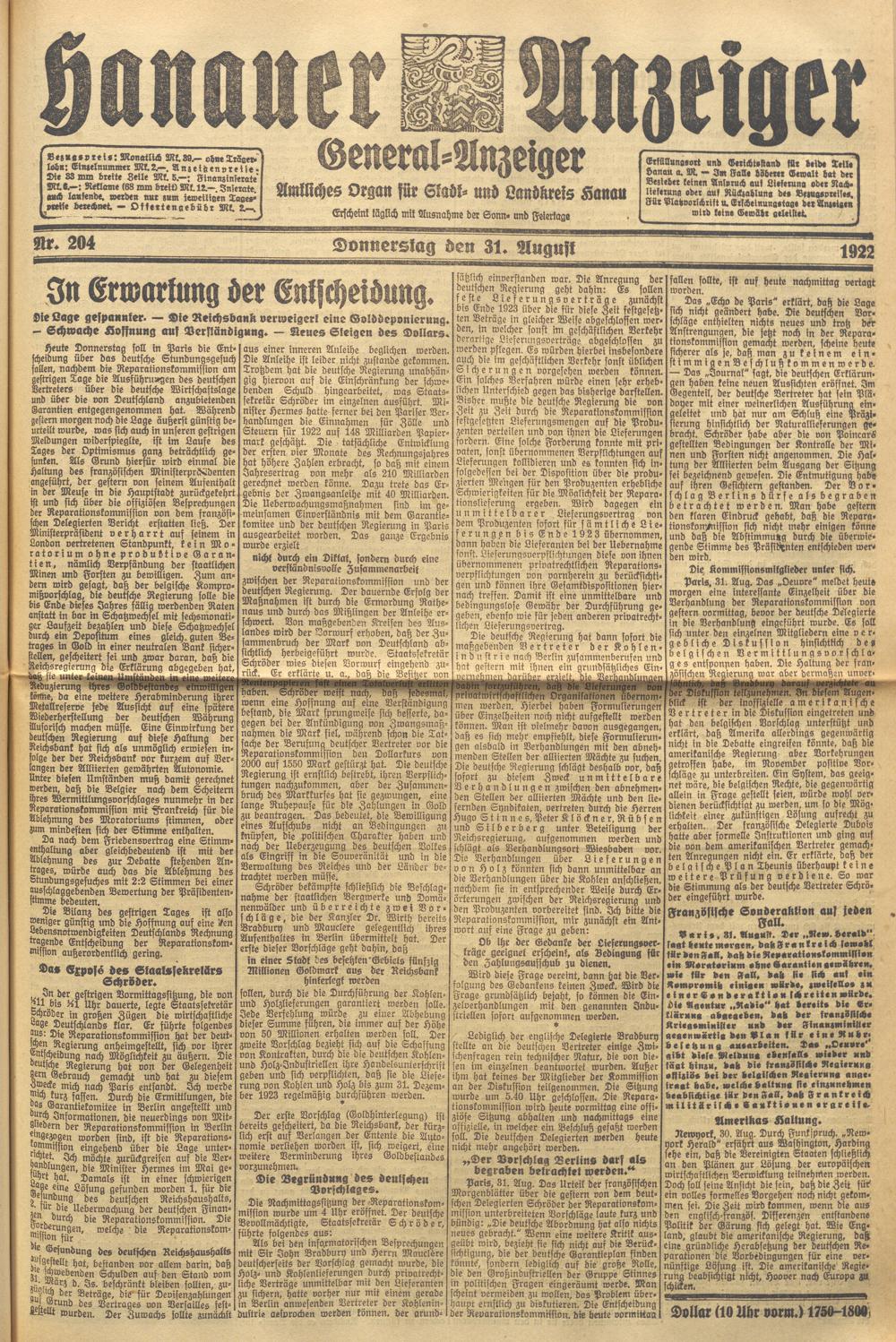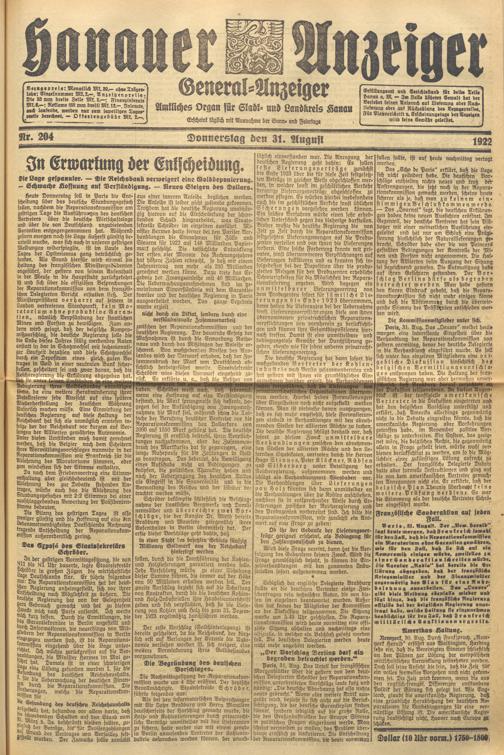 Hanauer Anzeiger. 1872-1941