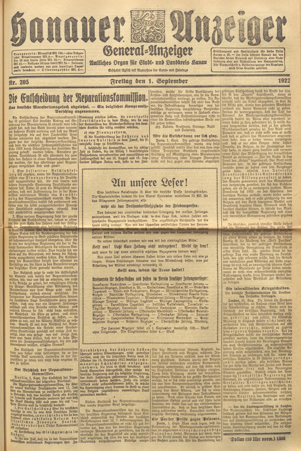 Hanauer Anzeiger. 1872-1941