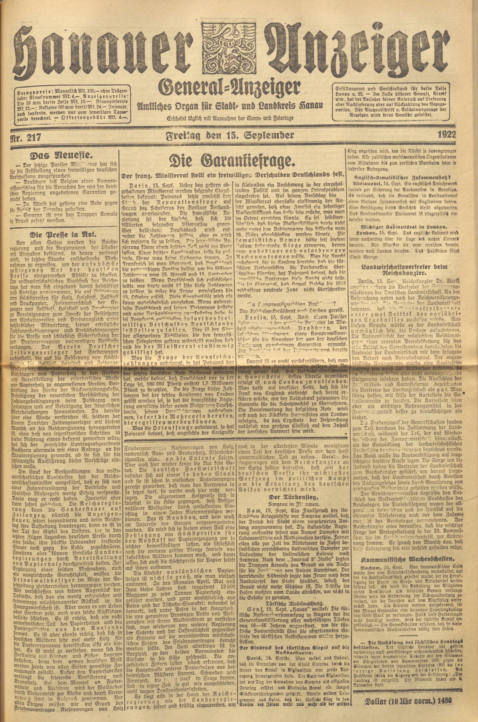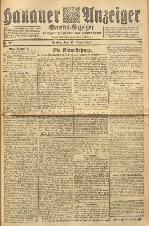 Hanauer Anzeiger. 1872-1941