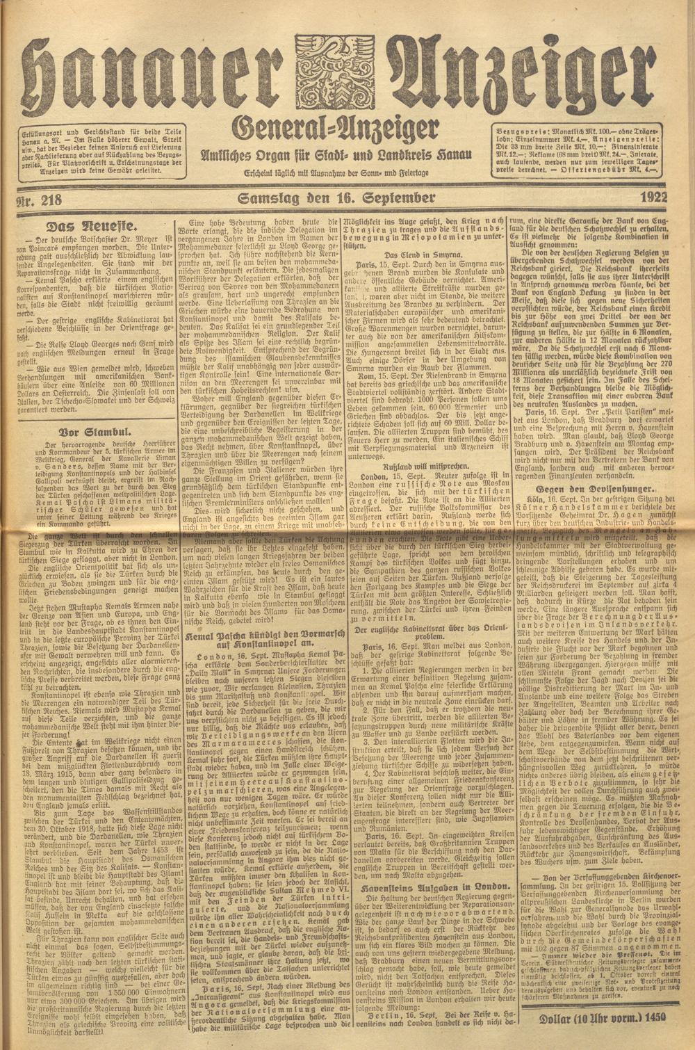 Hanauer Anzeiger. 1872-1941