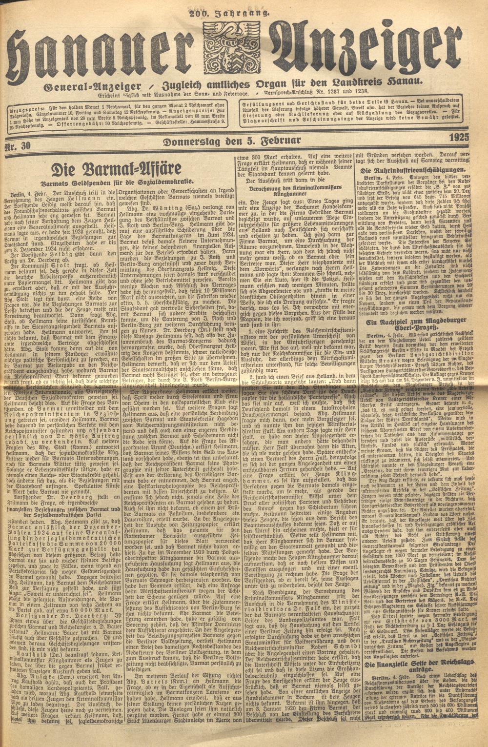 Hanauer Anzeiger. 1872-1941