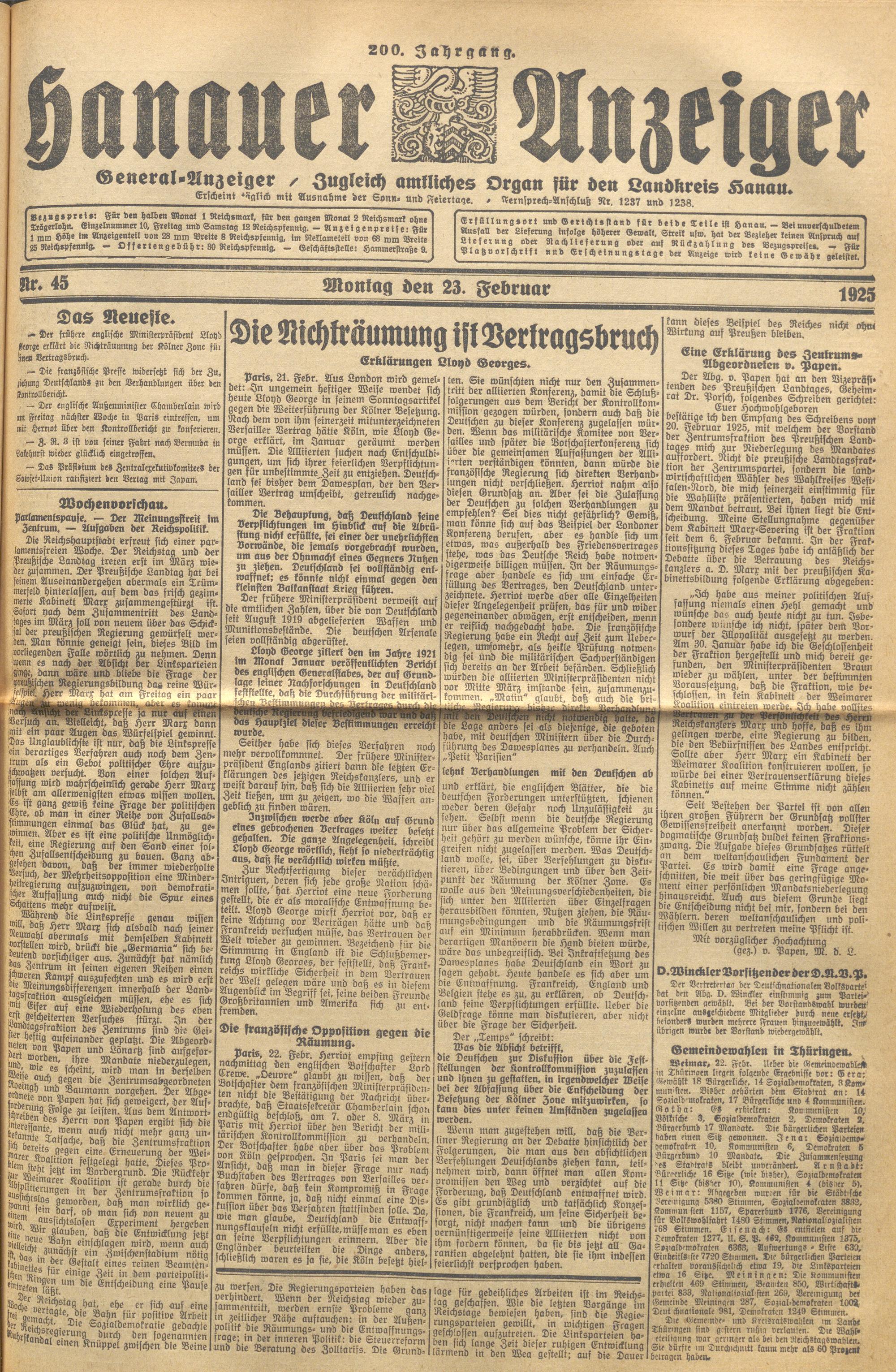 Hanauer Anzeiger. 1872-1941