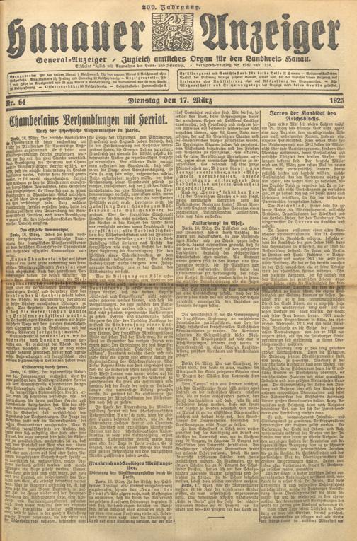 Hanauer Anzeiger. 1872-1941