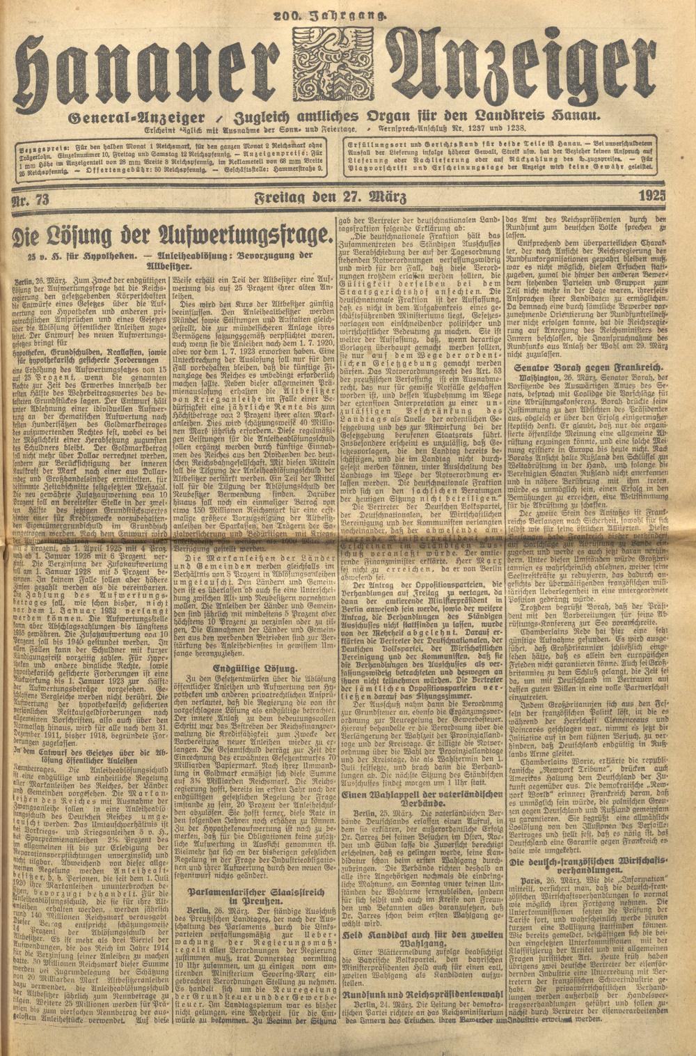 Hanauer Anzeiger. 1872-1941