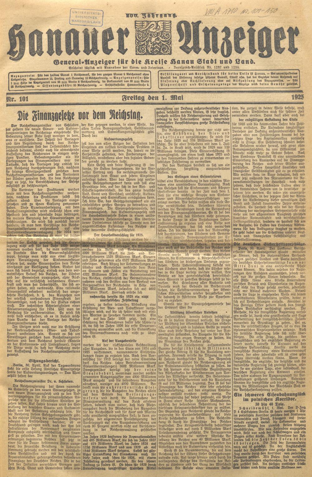 Hanauer Anzeiger. 1872-1941