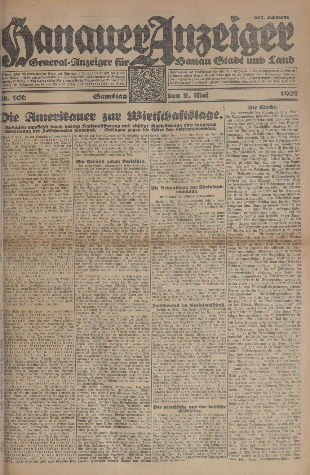 Hanauer Anzeiger. 1872-1941