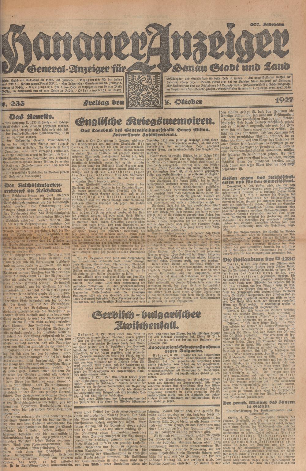 Hanauer Anzeiger. 1872-1941