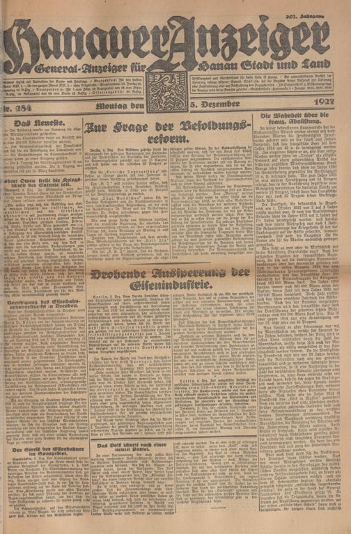 Hanauer Anzeiger. 1872-1941