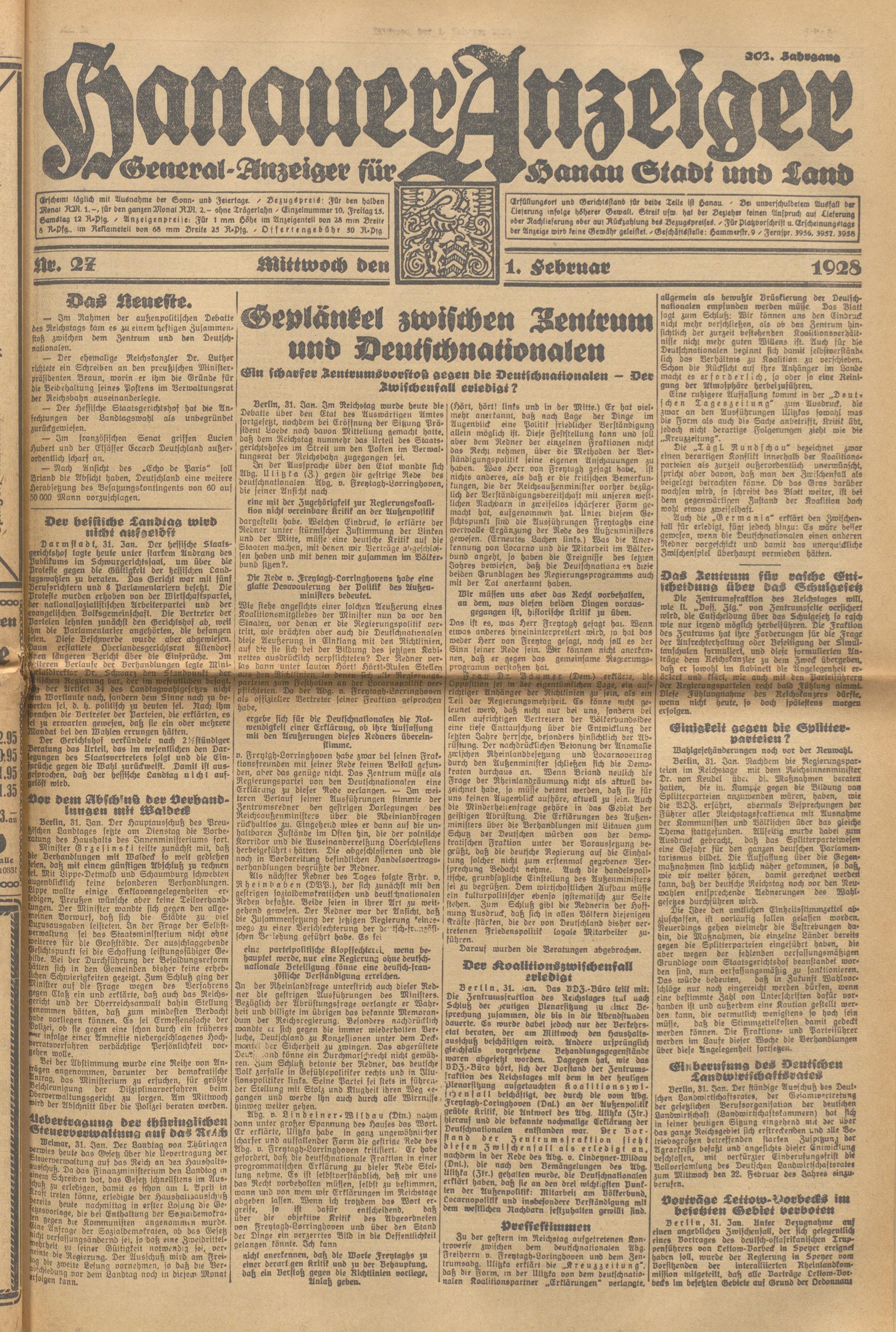 Hanauer Anzeiger. 1872-1941