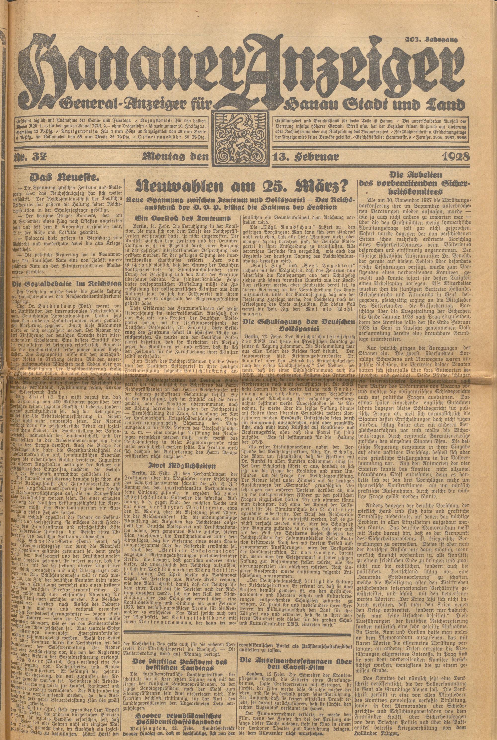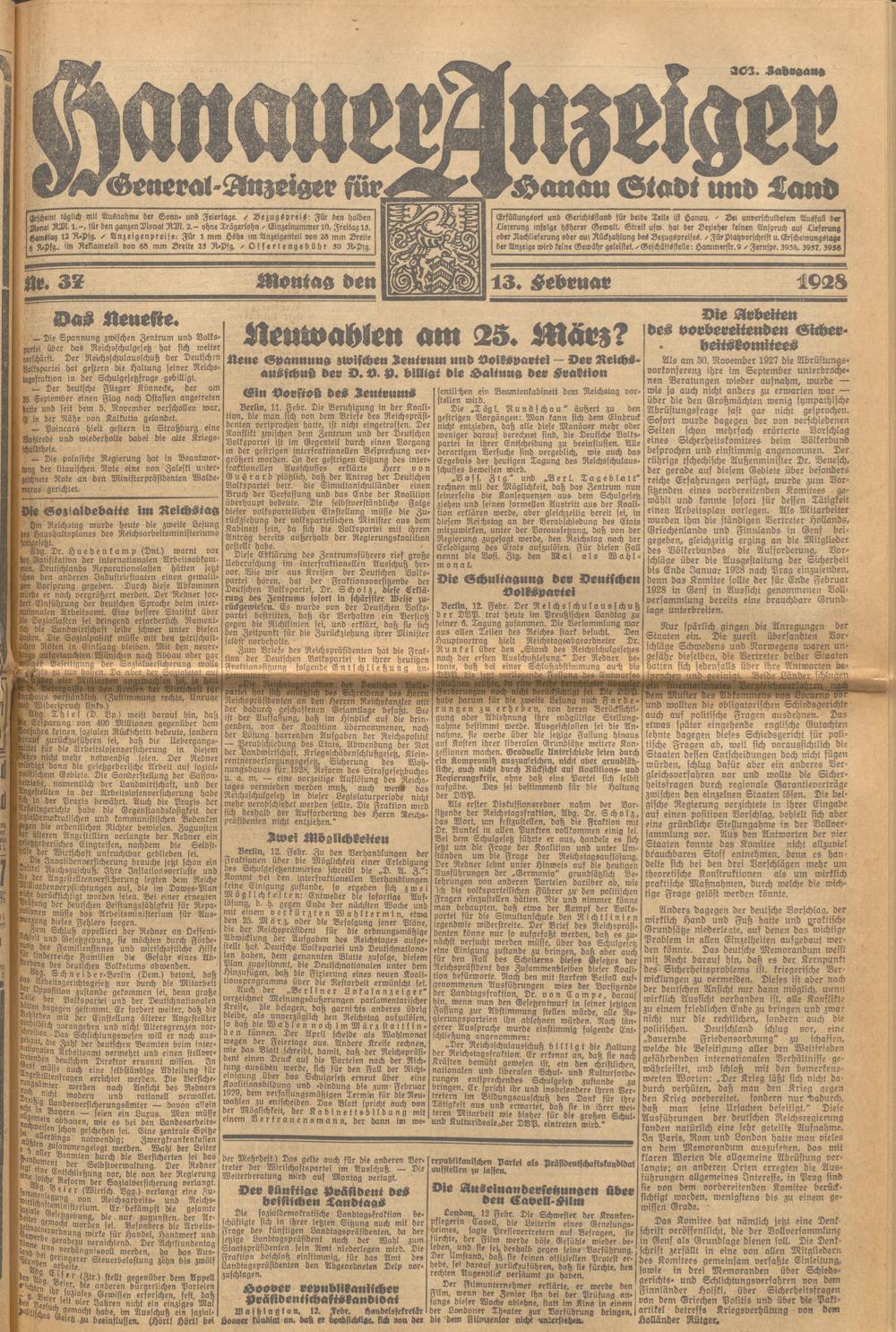 Hanauer Anzeiger. 1872-1941