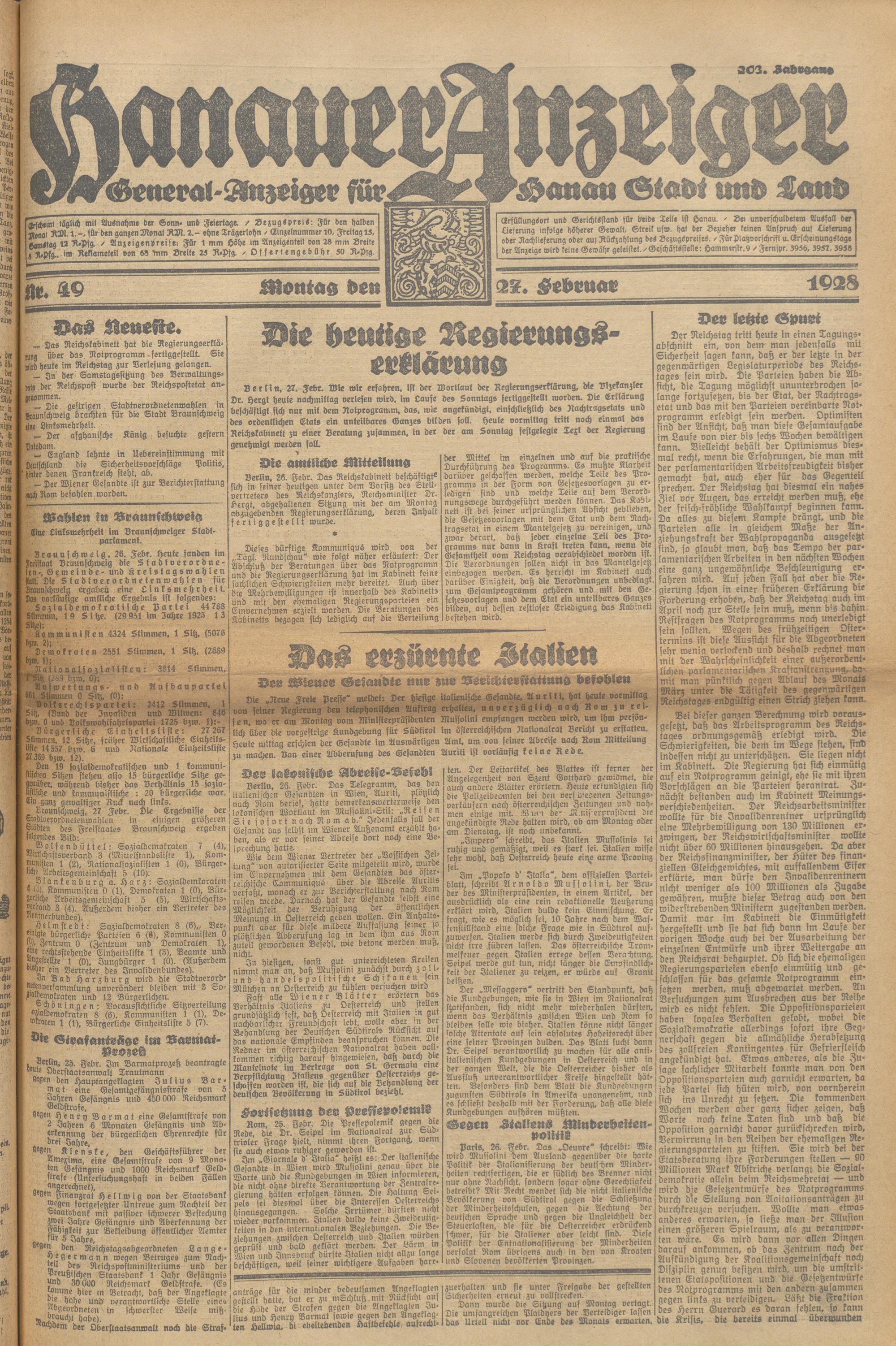 Hanauer Anzeiger. 1872-1941