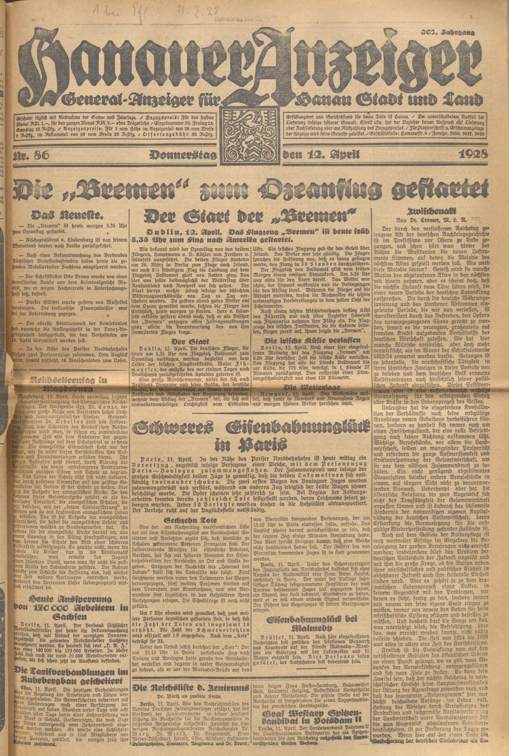 Hanauer Anzeiger. 1872-1941