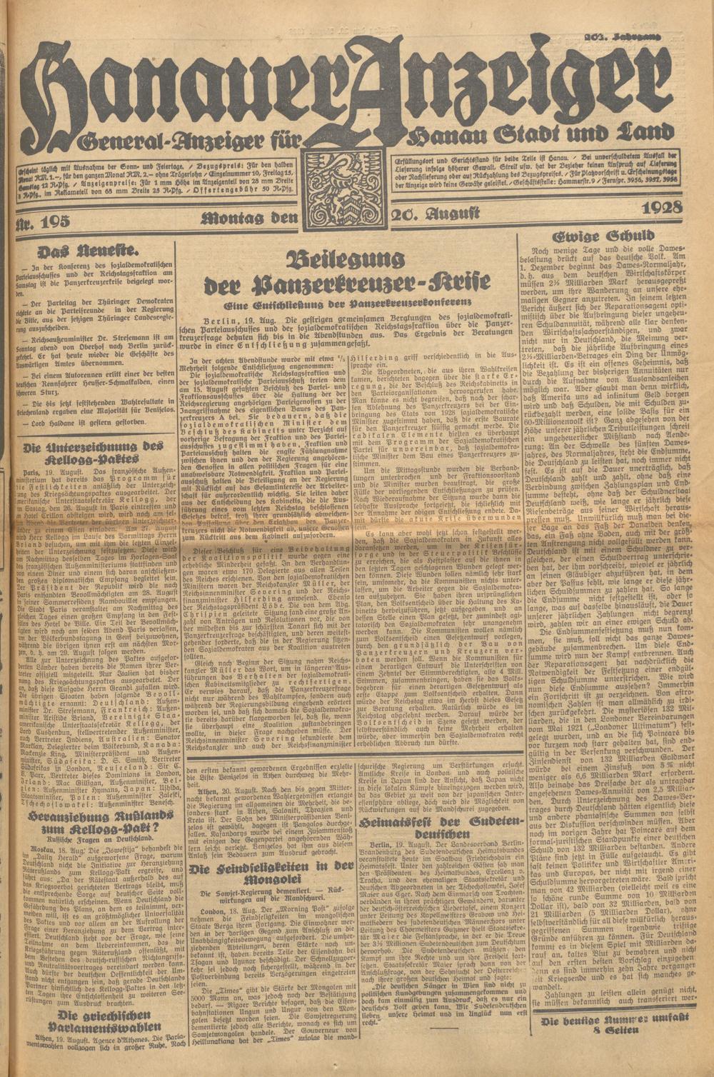 Hanauer Anzeiger. 1872-1941