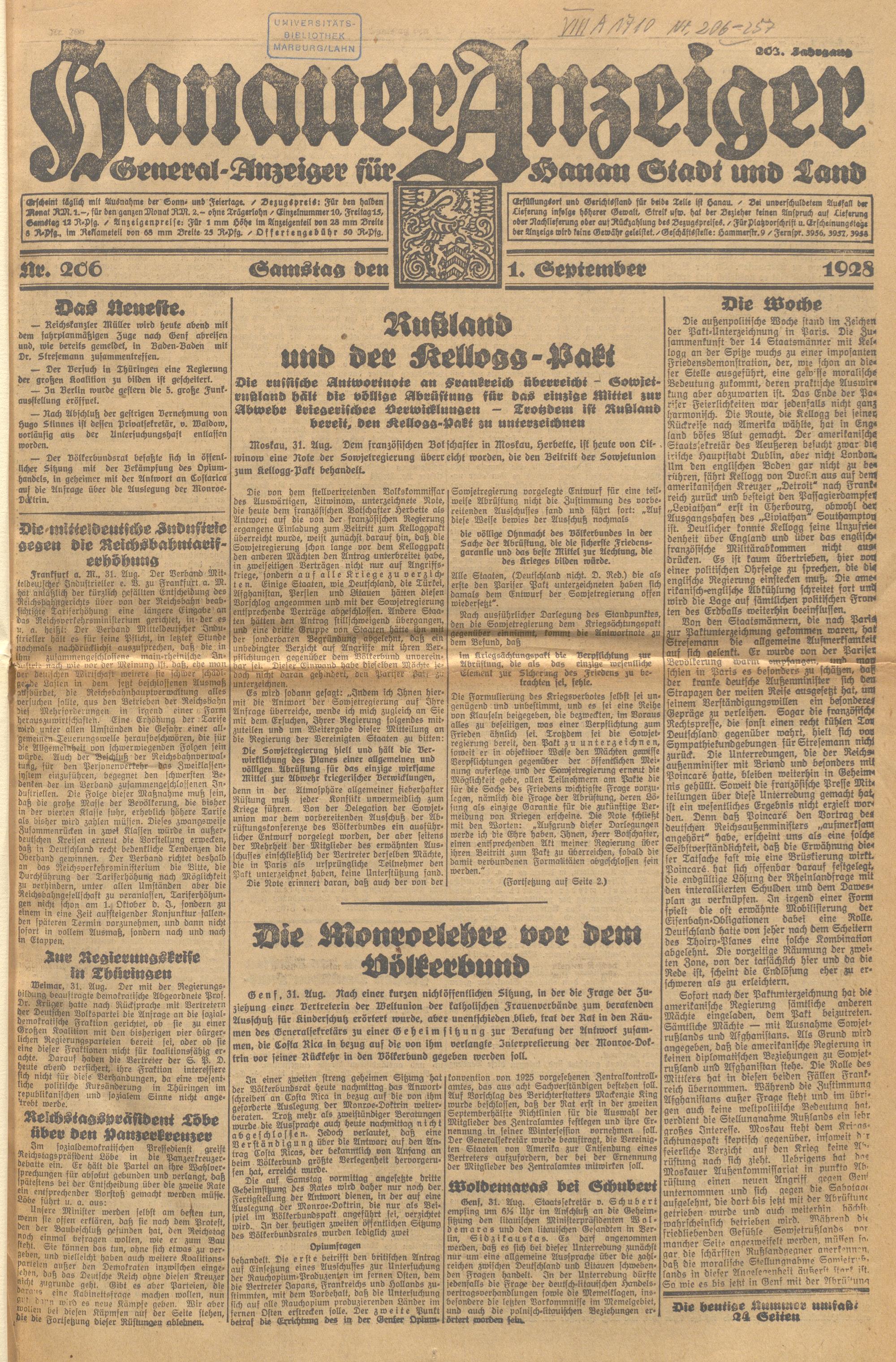 Hanauer Anzeiger. 1872-1941