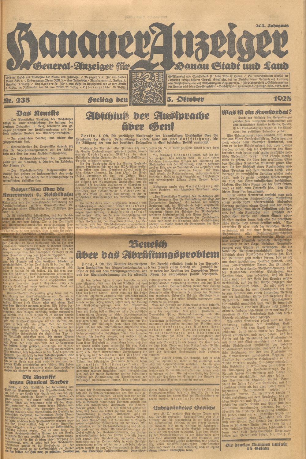 Hanauer Anzeiger. 1872-1941