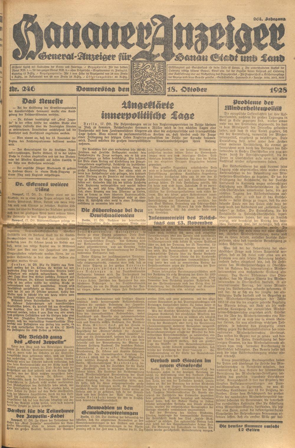 Hanauer Anzeiger. 1872-1941