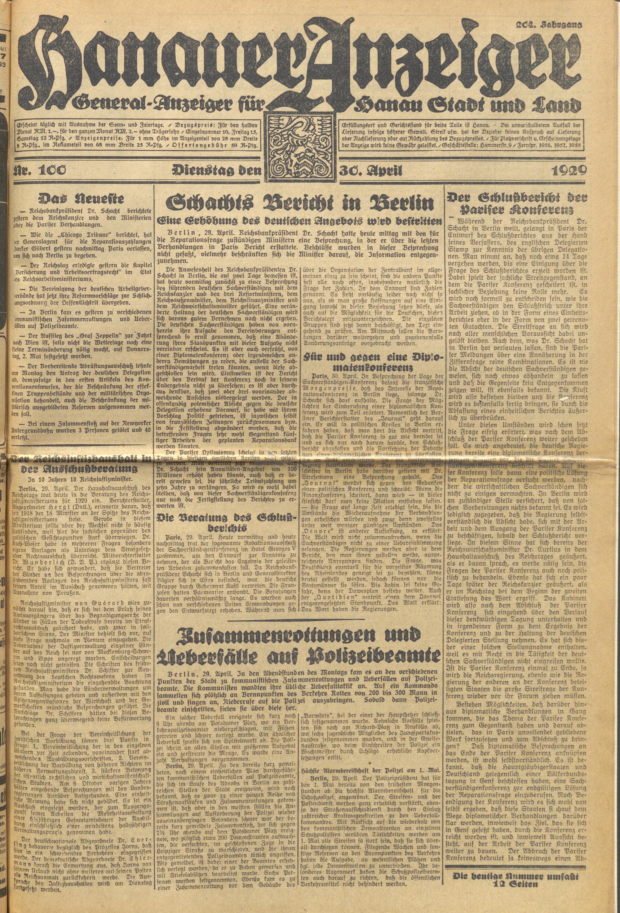 Hanauer Anzeiger. 1872-1941
