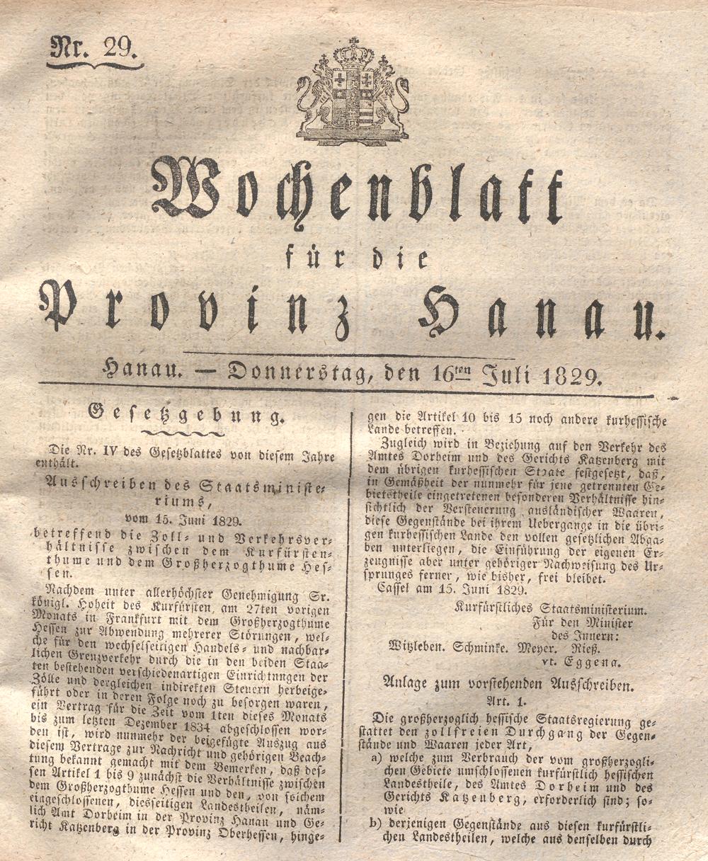 Wochenblatt für die Provinz Hanau. 1822-1849