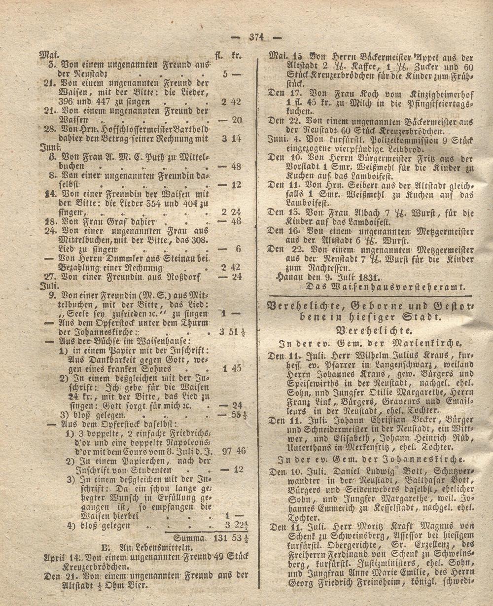 Wochenblatt für die Provinz Hanau. 1822-1849