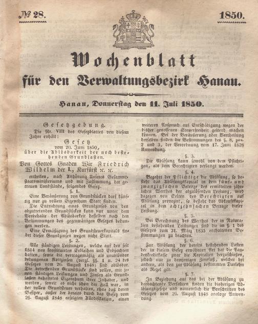 Wochenblatt für den Verwaltungsbezirk Hanau. 1849-1851