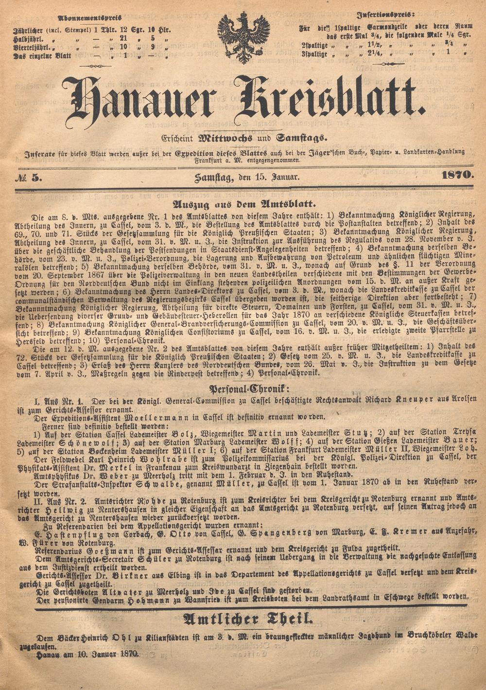 Hanauer Kreisblatt. 1870-1871