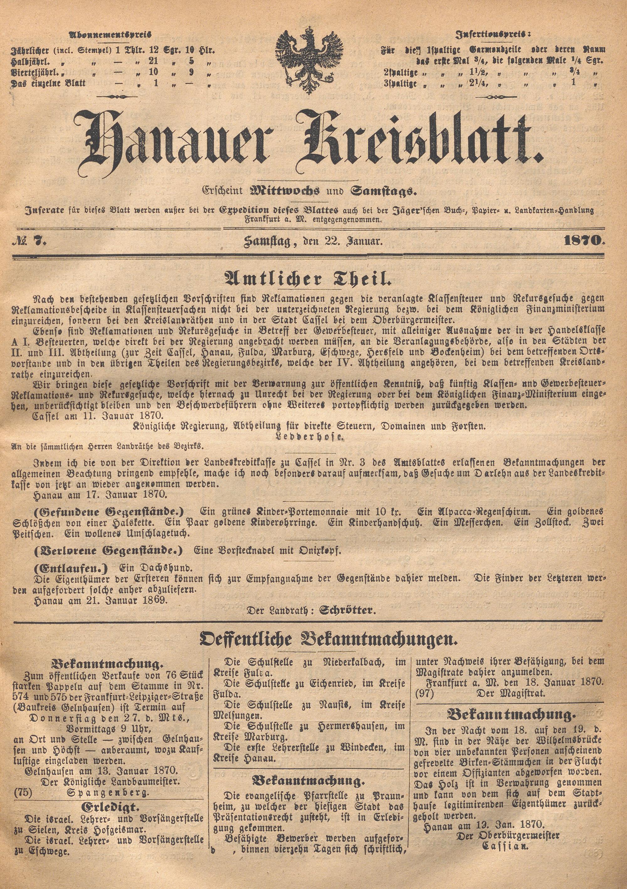 Hanauer Kreisblatt. 1870-1871
