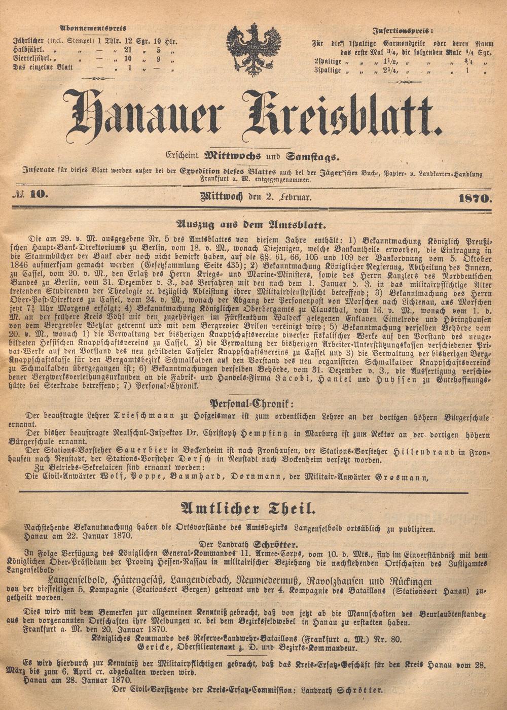 Hanauer Kreisblatt. 1870-1871