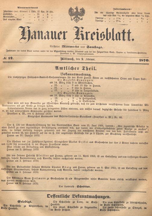 Hanauer Kreisblatt. 1870-1871