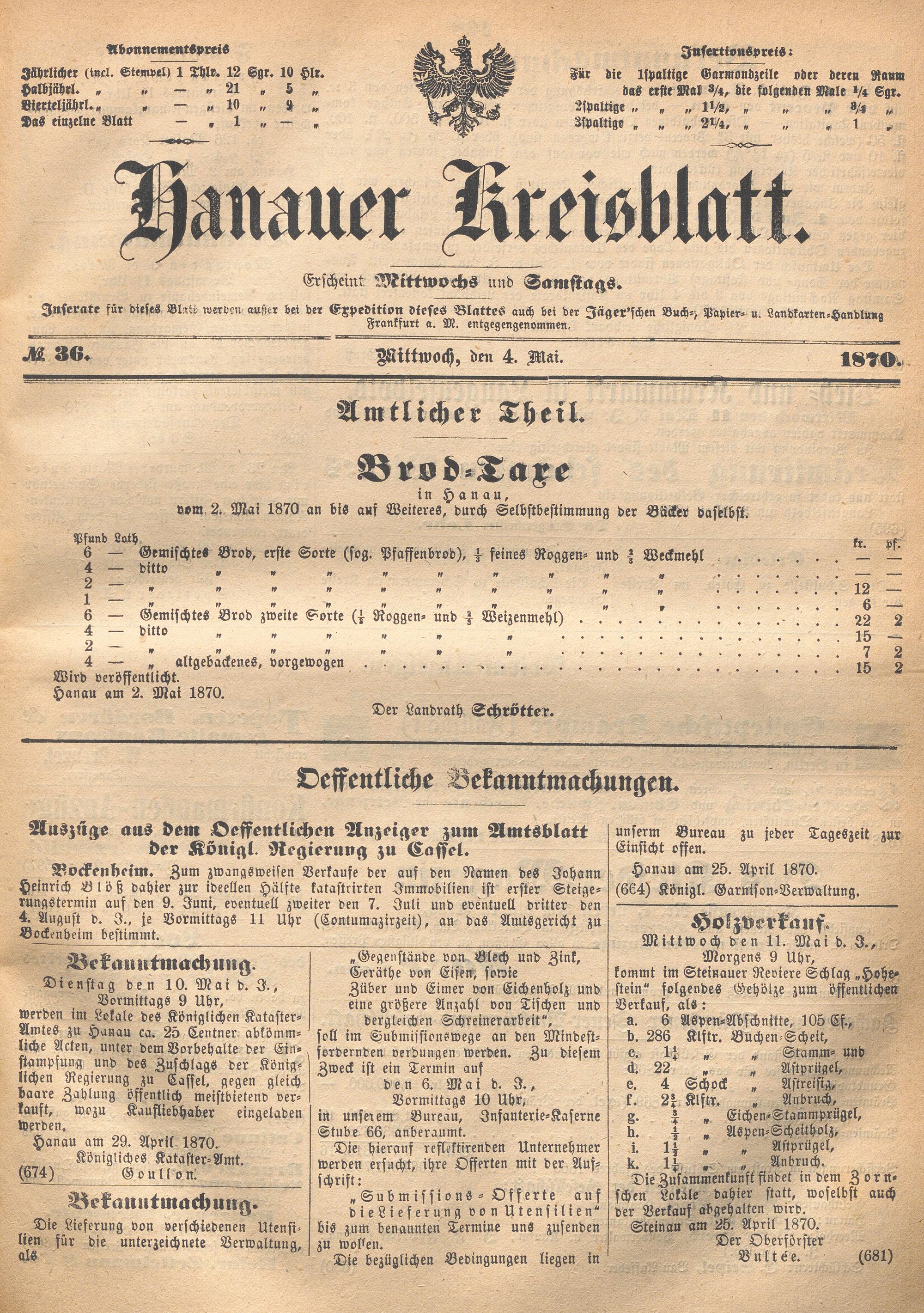 Hanauer Kreisblatt. 1870-1871
