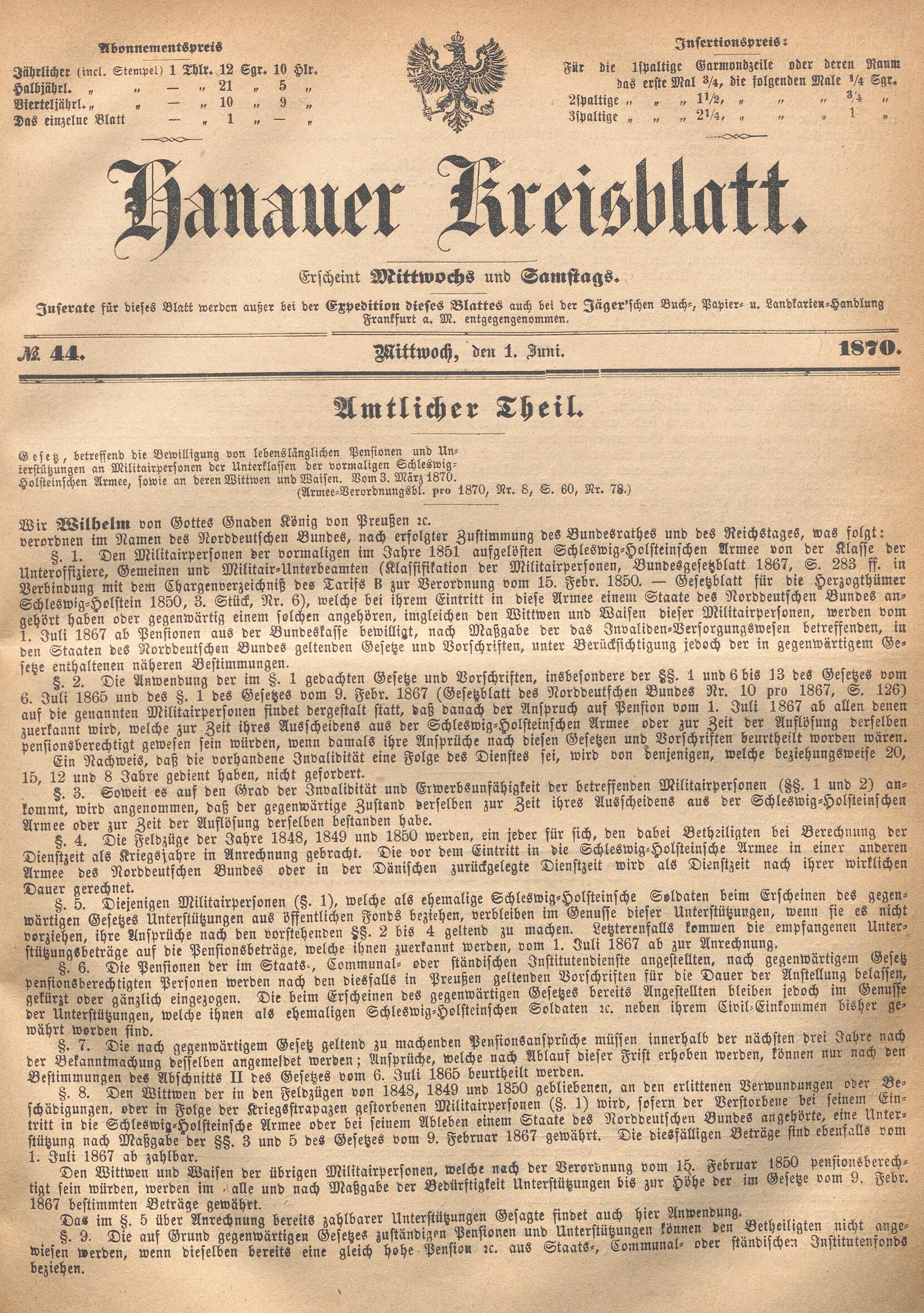 Hanauer Kreisblatt. 1870-1871