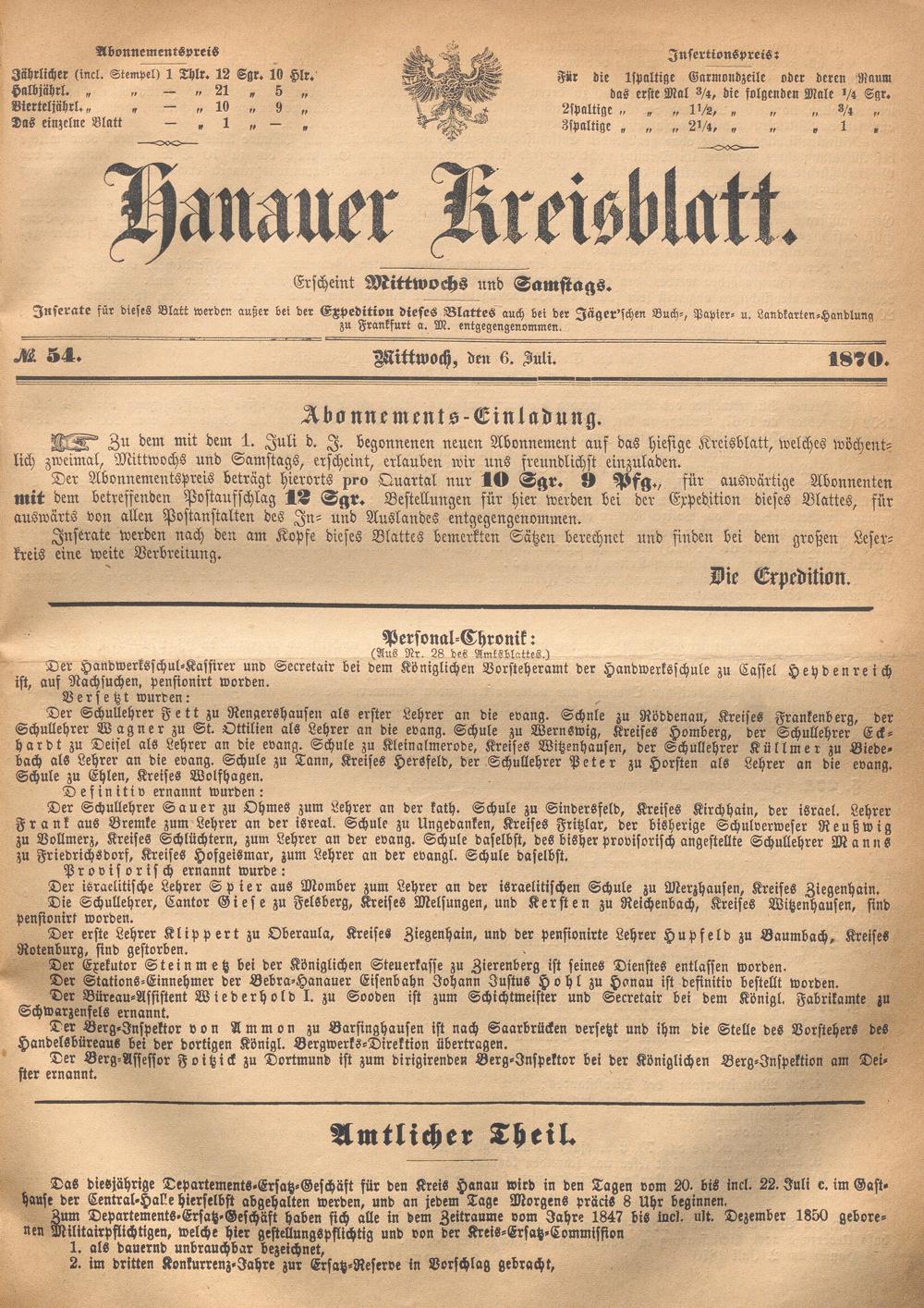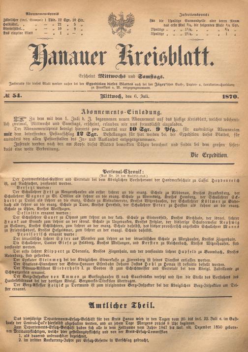 Hanauer Kreisblatt. 1870-1871