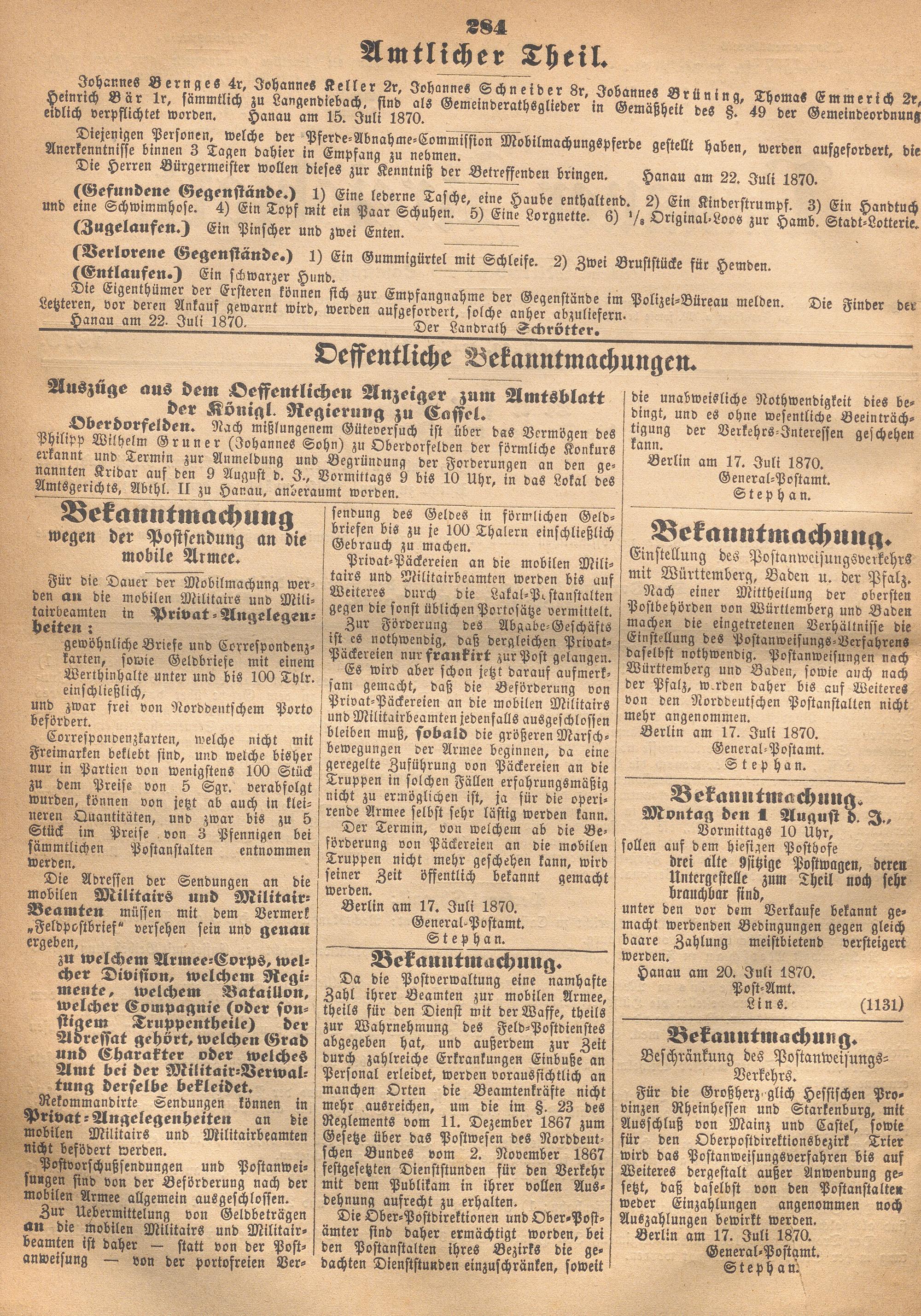 Hanauer Kreisblatt. 1870-1871