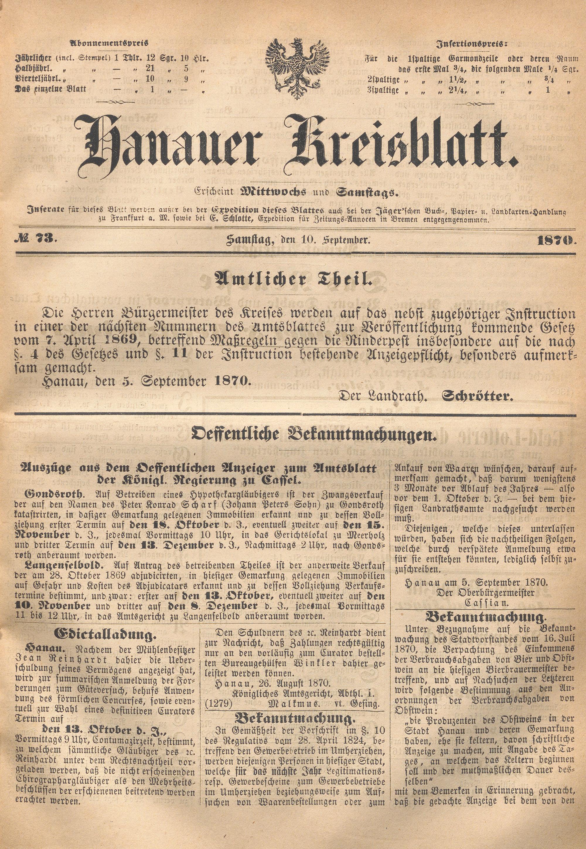 Hanauer Kreisblatt. 1870-1871