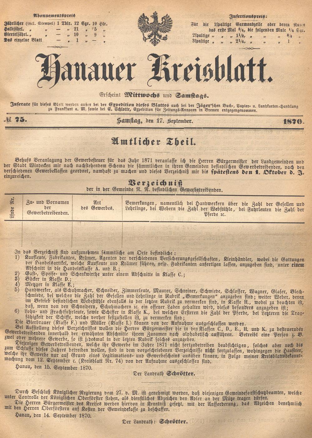 Hanauer Kreisblatt. 1870-1871