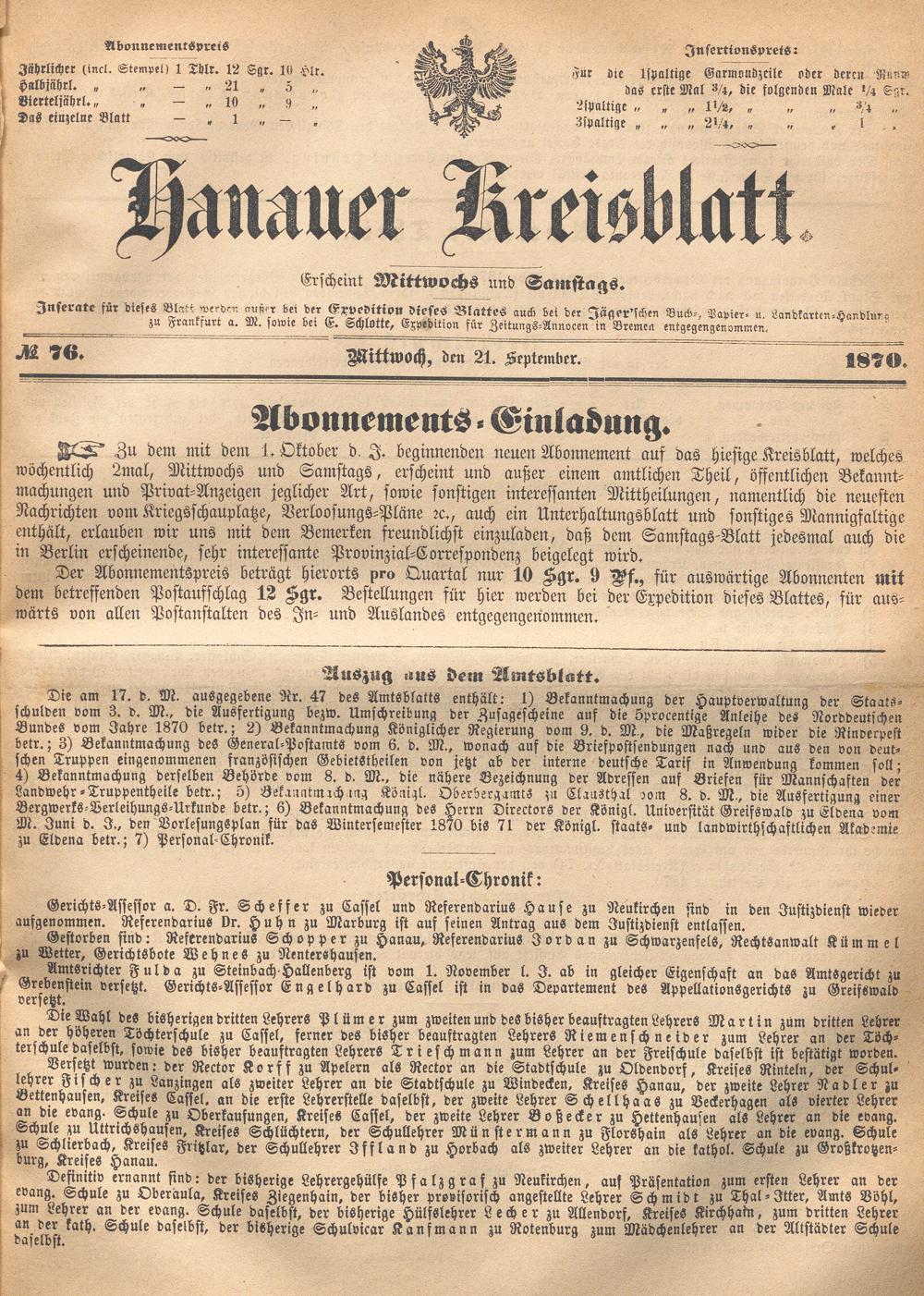 Hanauer Kreisblatt. 1870-1871